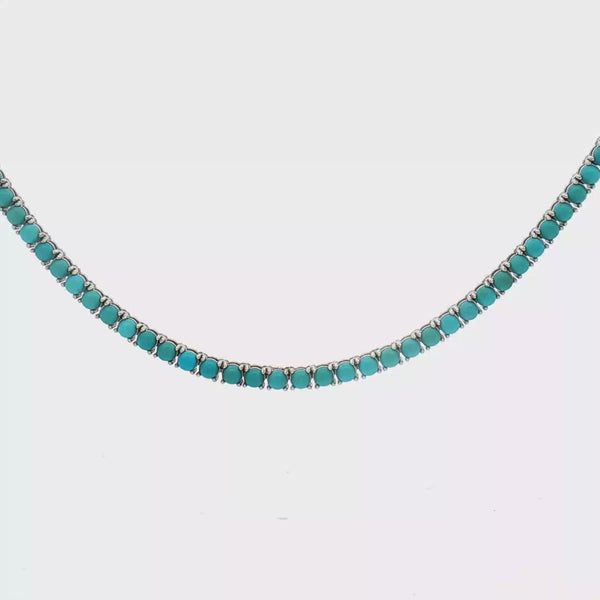 Collar tipo Gargantilla estilo tennis con Turquesa en Oro blanco 14k