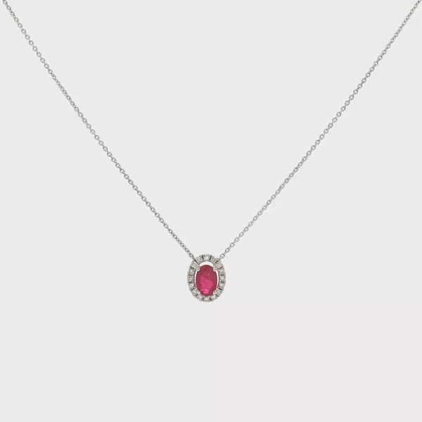 Collar con dije de Diamantes y Rubí en Oro blanco 14k